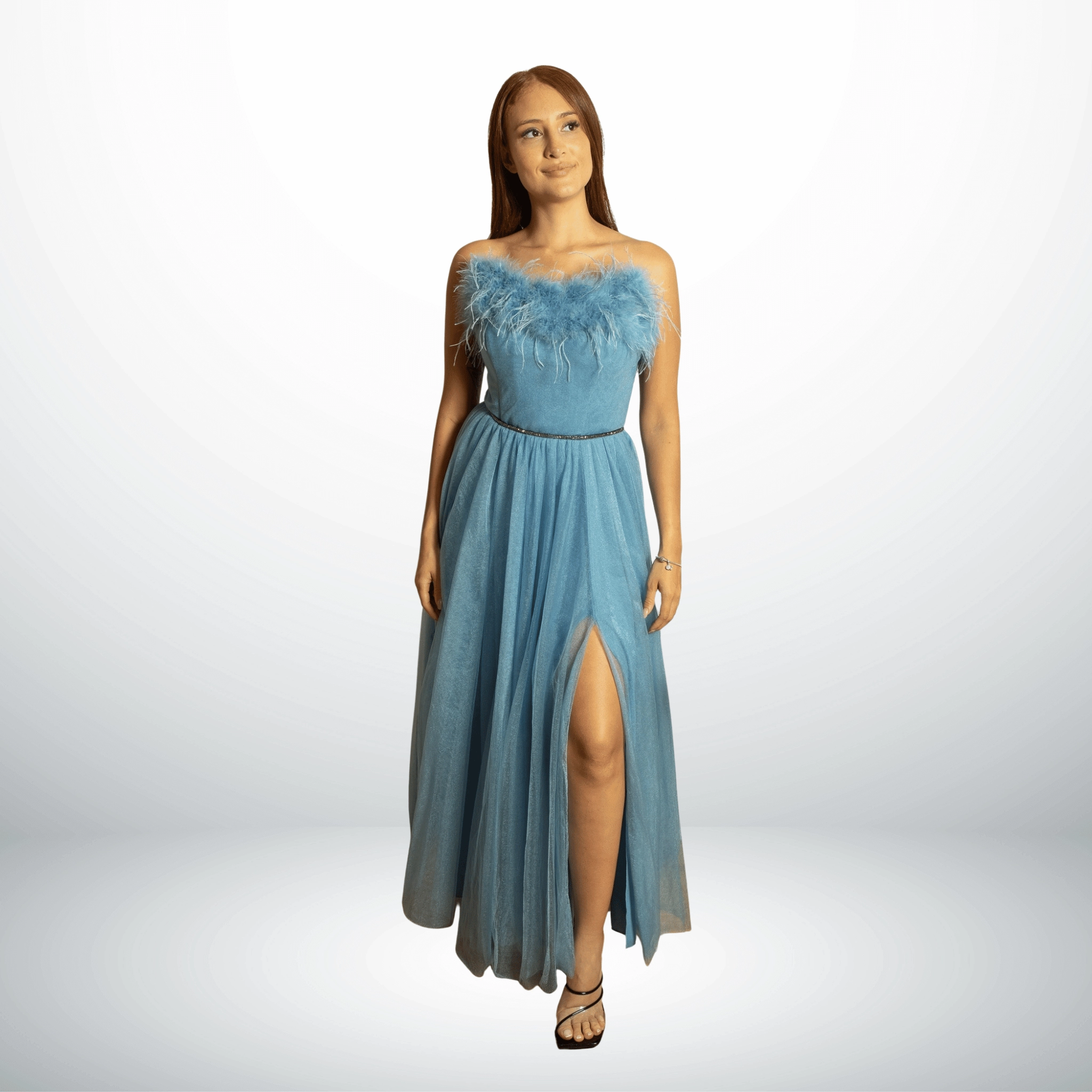 Falda larga en satén color chocolate, de tiro alto que estiliza la figura. Presenta un diseño asimétrico con drapeado lateral que aporta movimiento y una abertura frontal que realza el look con un toque sensual y sofisticado. Su confección incluye cintura elástica en la parte trasera para mayor comodidad y ajuste, además de un cierre con cremallera lateral en el costado izquierdo. El tejido satinado brinda un acabado fluido y luminoso, ideal para looks de noche elegantes y modernos.